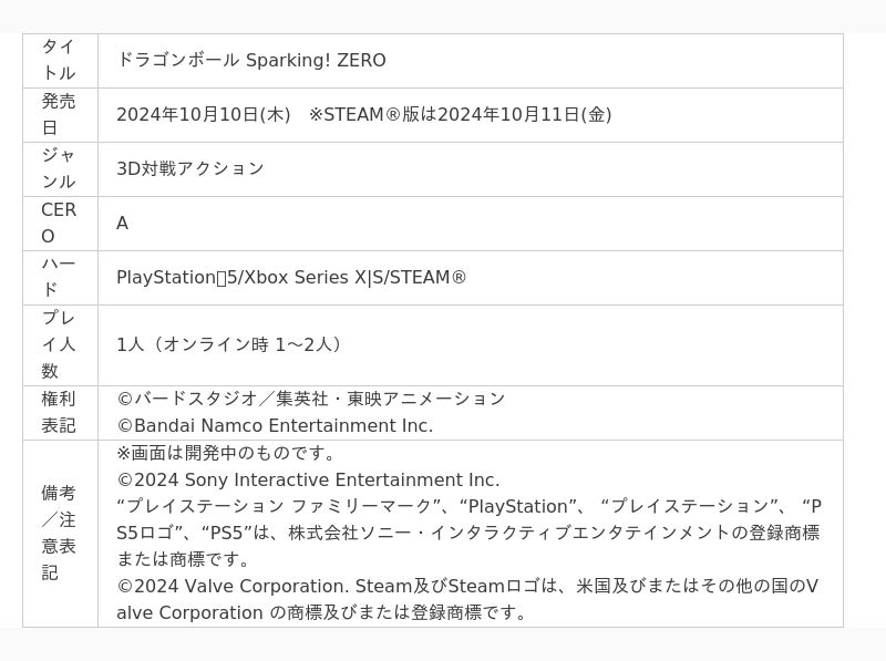 ■「ドラゴンボール Sparking! ZERO」 公式サイト:https://dbsz.bn-ent.net
