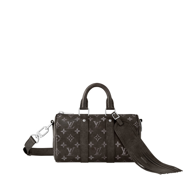 「キーポル・バンドリエール 25」は、プロのカウボーイの使い古したようなレザーサドルを彷彿させる、色褪せたモノグラム・パターンが特徴です。2024秋冬コレクションでファレル・ウィリアムスが掲げた「パリからバージニアへ」のテーマにふさわしく、装飾的なロングフリンジを添えた独特のレザーのネームタグをあしらいました。
