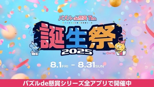 スマートフォン向けアプリの企画・開発・運営を行うオーテ株式会社(https://ohte.co.jp/ 以下、オーテ)は、累計ダウンロード数1,900万を超えるスマートフォンアプリ「パズルde懸賞」シリーズが、今年11周年を迎えることを記念し、全シリーズアプリにて誕生祭キャンペーンを開催します。