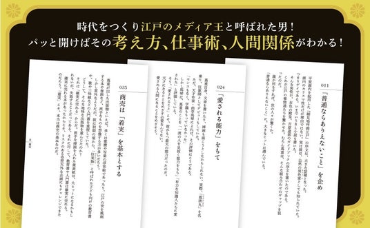 本書は、歌麿、写楽、北斎など日本が世界に誇る浮世絵師をプロデュースし、マンガの源流となるコンテンツを生み出した江戸のメディアプロデューサー・蔦屋重三郎の生き様とビジネスの真髄を、「1ページ読み切り」の形式で味わうことのできる一冊です。