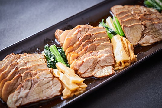 中国料理からは、ご当地グルメ“富山ブラック”のしっかりした醤油の味付けで仕上げた豚肩ロース肉の煮豚をご用意いたします。また、大豆と米麹から作る米みそに数種類の調味料や香辛料などを混ぜ合わせた、石川県の“とり野菜みそ”を使い、味噌のコクが味わい深い回鍋肉もお楽しみいただけます。さらに、魚を塩漬けし米糠に漬け込んで熟成させた福井県の郷土料理“へしこ”入りのチャーハンもご賞味ください。”へしこ”の発酵の香りと塩気がクセになり、高菜の漬物との相性が良い逸品です。