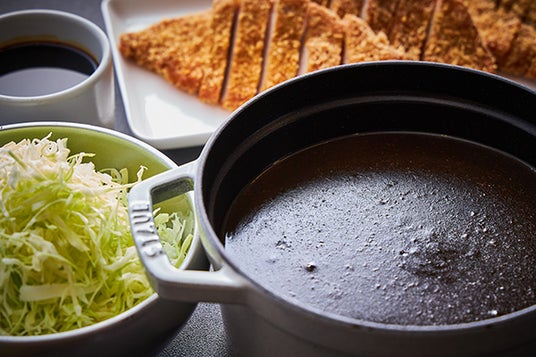 西洋料理からは、表面を炙った「富山県産叩き鰤カルパッチョ」をご用意。脂がたっぷりのった鰤と、オニオンとレモンのさっぱりしたソースが相性抜群です。分厚くてずっしりと重量感がある“福井県産大判あげ”は、野菜をたっぷり召し上がれるガドガドサラダでご提供いたします。濃厚なルーとサクサクの豚ロースカツがベストマッチな「金沢カレー」は、ほんのり感じるスパイシーさと甘さが魅力。千切りキャベツとソースもトッピングし、お召し上がりください。