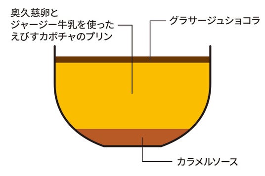 濃厚でコクのあるジャージー牛乳と奥久慈卵、甘みの強いえびすかぼちゃを使用し、クリーミーでなめらかなプリンに仕上げました。甘くてほろ苦いカラメルソースが美味しさを引き立てます。
