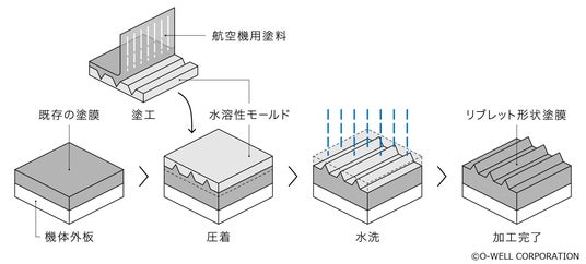 (*2) 既存の塗膜上に、水溶性の型で塗膜に凹凸を形成する手法。オーウエルおよびJAXAの共同特許(特許第6511612号)。