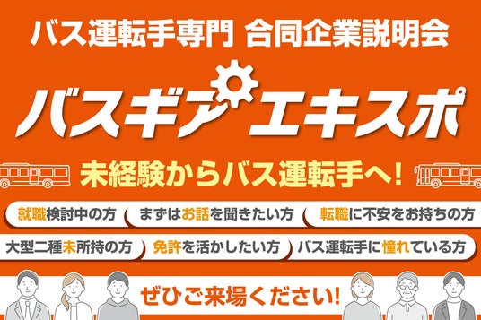 「バス運転手」に特化した合同企業説明会です。バス運転手に興味がある方なら年齢や性別を問わずどなたでも参加可能、バス業界を軸に就職を検討中の方にピッタリのイベントです!