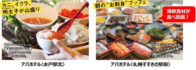 全国にあるアパホテルの中には、地元の名物や豪華な海鮮食材などが並ぶホテルも。