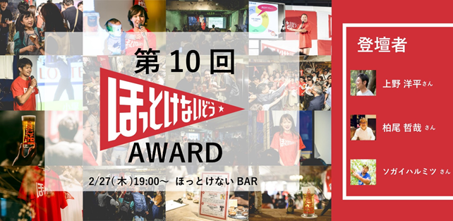 このたび、2月27日に、「ほっとけないどう」の活動の中心となる、挑戦者がその想いをプレゼンテーションするイベント「第10回ほっとけないAWARD」を北海道(札幌)にて開催します。