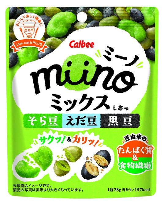 カルビー株式会社(本社:東京都千代田区、代表取締役社長:江原 信)は、豆まるごとのおいしさを、いつでもどこでも楽しめる「miino(ミーノ)」より、3種類の豆をミックスした『miinoミックス そら豆えだ豆黒豆しお味』を2024年10月14日(月)から全国のコンビニエンスストア先行で期間限定発売します。コンビニエンスストア以外の店舗では、2024年10月28日(月)から期間限定発売します(2025年4月中旬終売予定)。