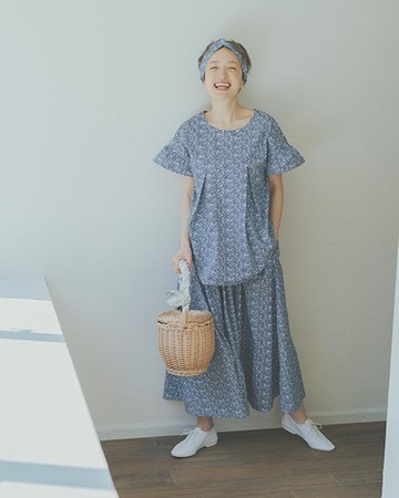 『リンネル』とkippisのコラボによって今回、誕生したファッションアイテムは全6種類。うち5点が、オリジナルの小花柄、ルース(Russu)柄のテキスタイルを用いたアイテムです。ラインアップは、着るだけでサマになるワンピースや、セットアップとしても使えるブラウスとロングスカート、パンツ、つけるだけで洒落感をプラスしてくれるヘアターバン。