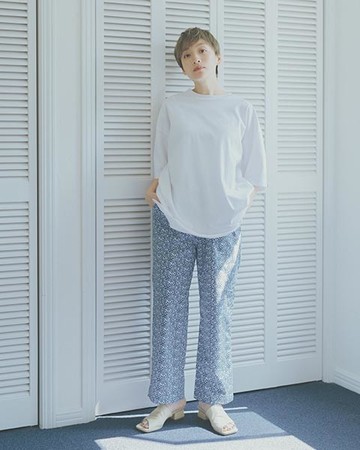 シックなバラ柄はブラウスと合わせればエレガントに、無地のTシャツと合わせればリラクシーなスタイリングにと、多彩な装いを楽しめます。
