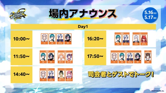 大人気の着ぐるみ&リアルヒーローが登場する「にじさんじグリーティングストリート」や、注目の「ラジオブース」のスケジュールを公開!