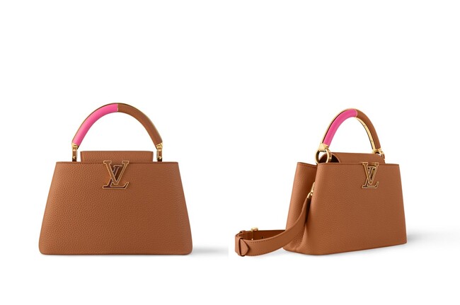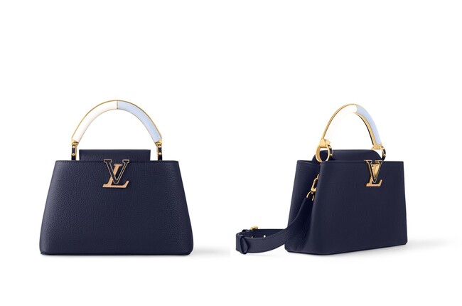 ルイ・ヴィトンは、4色のカラフルなレザーで構成されたこれまでにないハンドルが特徴の「カプシーヌ」の新作を発売しました。トリヨンレザーを使用し、メゾンの卓越したレザー加工技術で仕上げています。レザーで飾ったLV イニシャルの内側にはゴールドカラーのフレームをあしらい、華やかな雰囲気に。レザーにゴールドカラーのメタルパーツをあしらったツートーンカラーのLV イニシャルが、ラグジュアリーなクラフツマンシップを演出します。