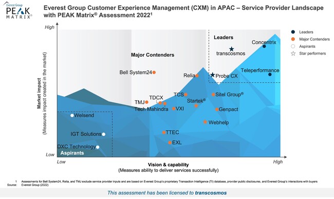 トランスコスモス株式会社(代表取締役共同社長:石見浩一、牟田正明)は、市場調査会社のエベレストグループが2022年8月に発表したアジアパシフィック地域のCXベンダー調査である「Service Provider Landscape with PEAK Matrix(R) Assessment 2022」において、2年連続でリーダーに認定されました。