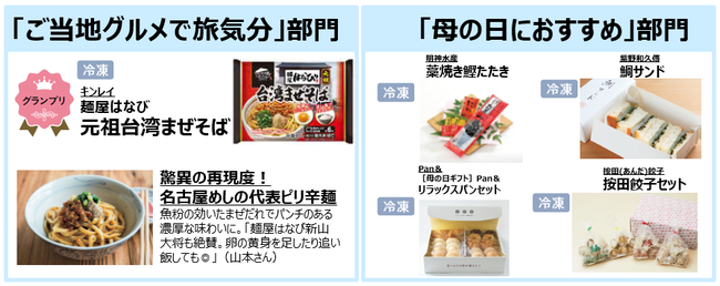 遂げた【注目の新製品】部門、自宅で全国の味を楽しめる【ご当地グルメで旅気分】部門、贈って喜ばれ、一緒に食べても嬉しい【母の日におすすめ】部門の4部門に分けて商品を紹介。料理研究家や冷凍食品専門家、『大人のおしゃれ手帖』編集部が各自のおすすめ商品を推薦し選出しました。さらに847人の読者による人気&注目商品も紹介します。