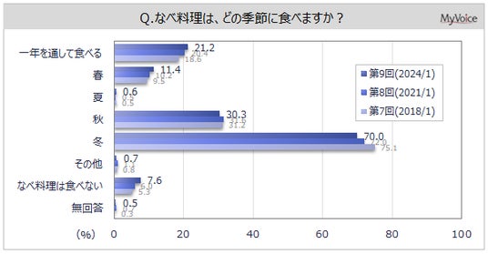 マイボイスコム株式会社(東京都千代田区、代表取締役社長:高井和久)は、9回目となる『なべ料理』に関するインターネット調査を2024年1月1日~5日に実施しました。