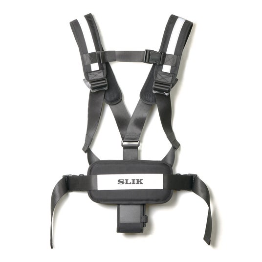 撮影機材やロングポールなどをより安全に保持するためのスリックオリジナルのショルダーハーネス。