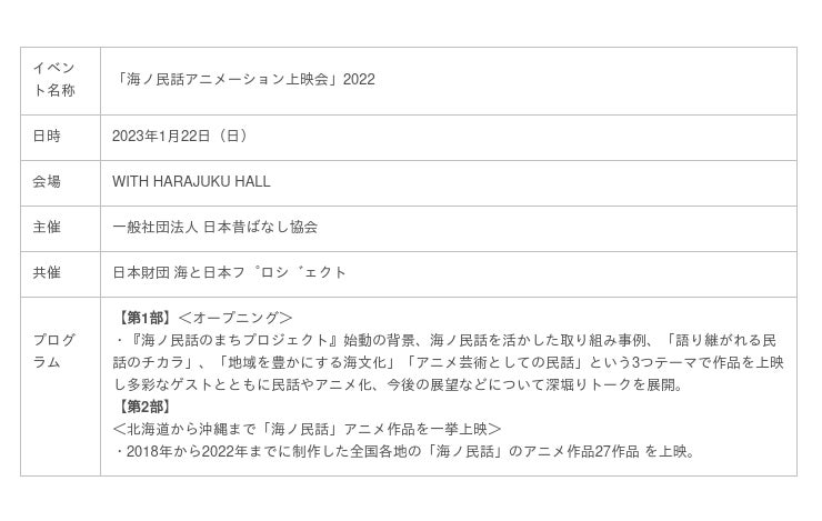 ●『海ノ民話アニメーション上映会2022』ライブ配信アーカイブ:https://youtu.be/RTywAqALIPo