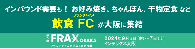 RX Japan株式会社は、2024年9月5日(木)~7日(土)の3日間、インテックス大阪にてフランチャイズビジネスの総合展「第3回 FRAX OSAKA」を開催します。