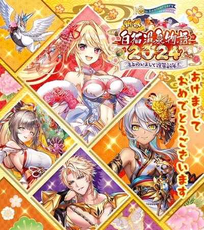 お正月をテーマにした『白猫』グッズフェアを2024年1月9日(火)16:00より開催いたします。描きおろし衣装を着たキャラクターの最新グッズも発売いたしますので、ぜひお正月の『白猫』もお楽しみください。