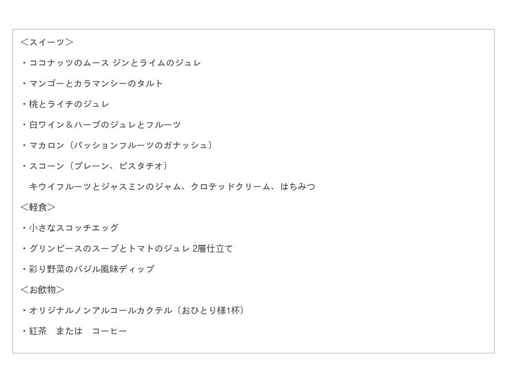 ◇商 品 名 :アフタヌーンティー“クロリ・エタン” ※前日までのご予約制