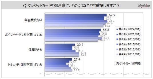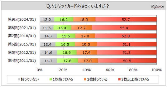 マイボイスコム株式会社(東京都千代田区、代表取締役社長:高井和久)は、9回目となる『クレジットカードの利用』に関するインターネット調査を2024年1月1日~5日に実施しました。クレジットカードの保有・利用状況、選定時の重視点などを聞いています。