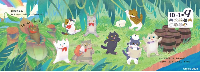 猫の数を数えながら、自然とたし算ひき算をイメージできる絵本