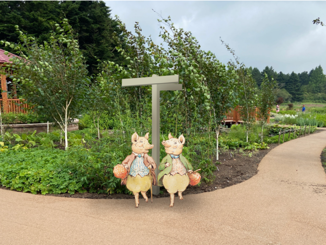 4月29日(土)からは、庭園内に新たなキャラクターフォトスポットが3か所お目見えし、新たなピーターラビットエリアとして、富士芝桜まつり会場竜神池近くの小道に、『ピーターラビットのおはなし』をはじめ、絵本シリーズの「おはなしのかけら」をちりばめた屋外ギャラリー「ピーターラビット™ ストーリートレイル」が登場します。