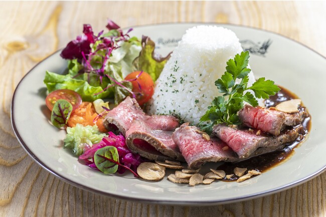庭園に併設したカフェでは、絵本に出てくるパイとデイジーのお花をモチーフにした「ブルームパイ」をはじめ、色とりどりの野菜やスモークサーモンを花束のように盛りつけた「マグレガーおじさんのとれたて野菜のブーケサラダ」、ローストビーフと富士山型のライスを盛りつけた「彩りローストビーフプレート」などのオリジナルメニューのほか、サクサク食感のシュークリームやパンなどのテイクアウトメニューを販売しています。