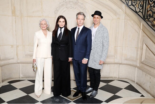 グレン・クローズはウール&シルクのホワイトスーツに、シューズを合わせた装いを披露しました。ジュリエット・ビノシュは2024年フォール コレクションより、ウール&シルクのブラックスーツとホワイトのコットンシャツを着こなしました。