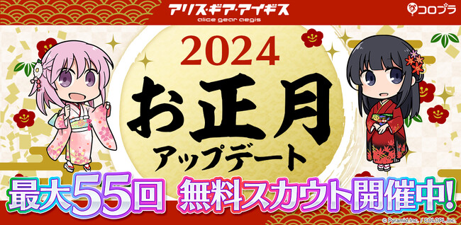 株式会社コロプラ(代表取締役社長:宮本貴志、本社:東京都港区、以下「コロプラ」)は、スマートフォン向けゲーム『アリス・ギア・アイギス(以下、アリスギア)』にて、2024年1月1日(月)0:00より「お正月アップデート」を開催しております。
