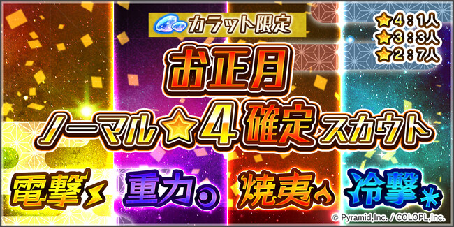 ●4種の『カラット限定ノーマル★4確定スカウト』開催中!