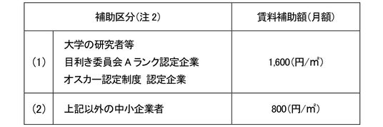 (注2)「目利き委員会Aランク認定企業」「オスカー認定企業」は、優良企業等を認定する京都市の制度です。補助区分の適用・交付期間・補助額等は、京都市新事業創出型事業施設活用推進事業補助金交付要綱に基づき決定されます。