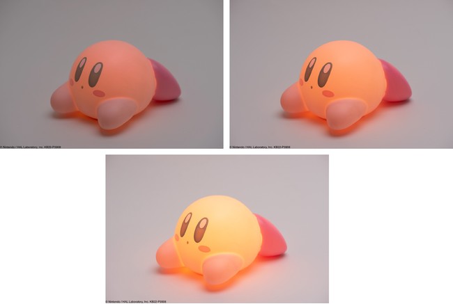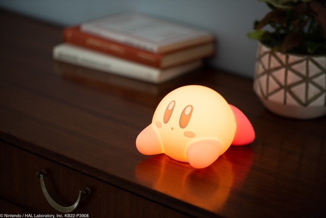 寝そべってリラックスするカービィをかたどったルームライトは、やさしい手ざわりのPVC素材。熱くならないLED光源で、3段階で明るさを調節できます。手のひらサイズで、ベッドサイドやテーブルなど、どこでも便利に使えます。日中はパステルピンクのかわいいカービィがオブジェとしておうち時間を楽しくしてくれます。