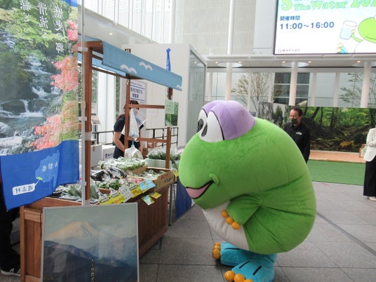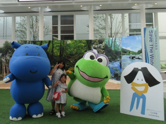 横浜市水道局キャラクターはまピョン、水環境キャラクターかばのだいちゃん、河川のキャラクターハマカワさんが登場!一緒に写真撮影もできます!