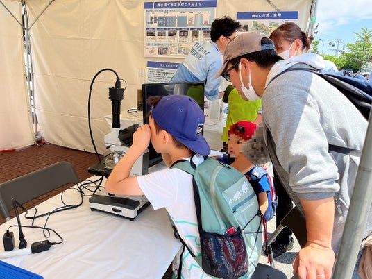 顕微鏡を使って、横浜市の水源に住む微生物を観察することができます。