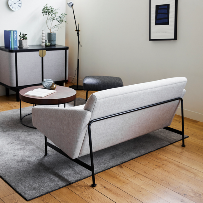 どこに置いても美しく見えるよう、側面から背面にかけてのデザインにも特徴を持たせました。脚部にブラック塗装したスチールを使用することによって、抜け感があり軽やかな印象になるとともに、空間がぐっと引き締まる効果もあります。