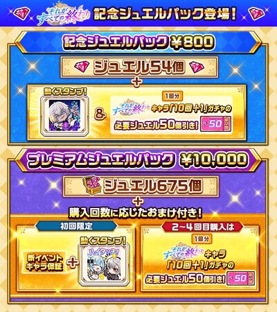 ガチャなどを引くために必要なジュエルを購入できる特別な「ジュエルパック」が発売中です。