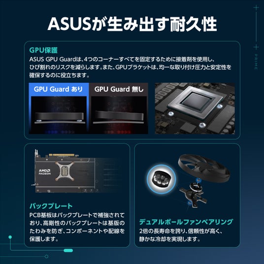 ASUS JAPAN株式会社は、PRIMEシリーズよりAMD Radeon(TM) RX 9070 XT を搭載したビデオカード「PRIME-RX9070XT-O16G」、AMD Radeon(TM) RX 9070 を搭載したビデオカード「PRIME-RX9070-O16G」を発表しました。2025年3月8日(土)より販売開始します。