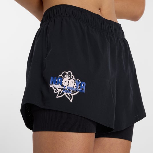 名古屋ウィメンズマラソン2026限定の3インチ2in1ショーツ。右裾の大会ロゴがアクセントです。究極の動きやすさ・快適性・フィット性を追求したパンチング4WAYストレッチが優れた通気性と軽量性を発揮し、ソフトに包み込むシームレスなインナーショーツとともに抜群の穿き心地を提供。内側出しのフラットなウエスト紐、ウエスト後ろのジップポケット、ウェストインサイドに2つのドロップインポケット。インナータイツにもポケット付き。