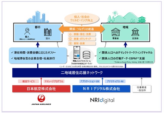 今回の合意書締結を契機として、今後はJALが事務局を務める二地域居住促進コンソーシアム「二地域居住応援ネットワーク」にNRIデジタルが参画し、2026年度の「つながる、二地域暮らし」における「MANYWHERE」を活用したサービスの本格運用を図ります。