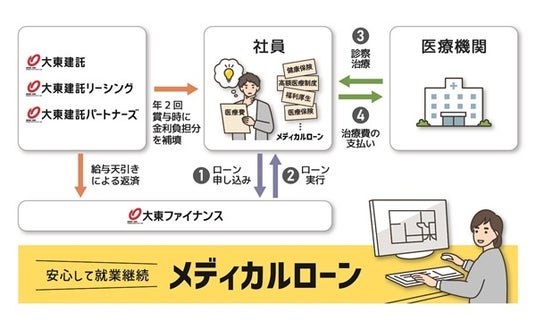 この制度は、重大疾病や先進医療などによって発生する高額な医療費を対象に、最大500万円まで無担保・保証人不要で利用でき、在籍中は金利を会社が全額負担します。貸付は、大東建託100%出資子会社で、金融事業を担う大東ファイナンスが行います。健康保険や医療保険、福利厚生、預貯金に加えた新たなセーフティネットとして、社員の経済的負担を軽減し、安心して働き続けられる環境を整えることを目的としています。