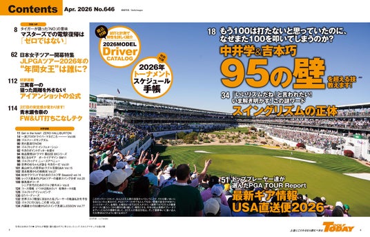 ギア企画では、アメリカからのUSPGA最新情報をはじめ、2026年モデルの最新ドライバーを徹底比較試打。クラブ選びに悩むゴルファーに向けて、性能差を明快に整理しました。さらに、日本女子プロツアー開幕特集では、今季注目の8選手をピックアップし、シーズンの見どころを展望します。