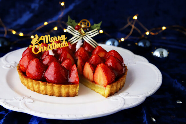 香ばしいアーモンドクリームとクリスピーなシュクレ生地に真っ赤な大粒の苺をたっぷりとのせました。 クリスマスシーズンだけの極上のマリア―ジュを今年もおたのしみください。