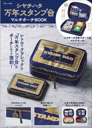 朱肉のいらないはんこやスタンプパッドが人気のメーカー「シヤチハタ」が、宝島社の「人気文具付録」シリーズに初登場。特別付録は、シヤチハタ創業当時の「万年スタンプ台」のデザインをモチーフにしたマルチポーチです。藍色のサテン地に金色の刺繍が上品さを醸し出し、ロゴ刻印引き手によりアンティーク感がアップ。人気を集めるシヤチハタのスタンプパッド「いろもよう」がちょうど4つ入るサイズです。趣味の道具入れや、印鑑・通帳などの貴重品入れなど使い道は無限。誌面では、シヤチハタの歴史や人気商品の紹介、クラフトはんこの楽しみ方などを紹介しています。