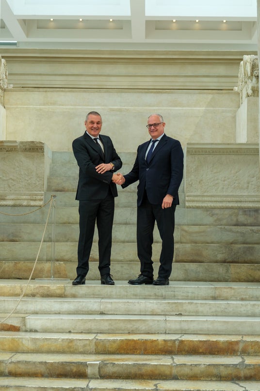 左よりブルガリ CEO ジャン-クリストフ・ババン、ローマ市長 ロベルト・グアルティエリ氏
