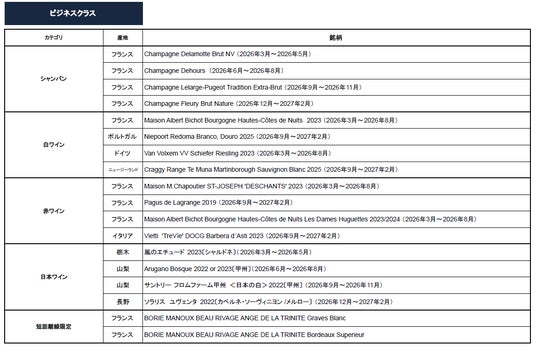 ファーストクラスで提供予定のブルゴーニュの名門ワイン「Maison LEROY」(期間限定)