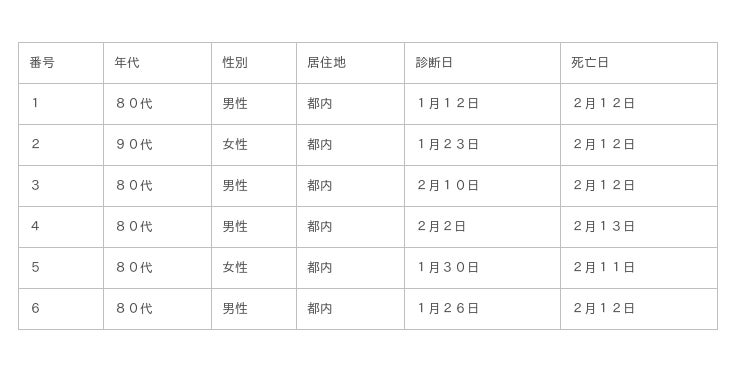 都内で新型コロナウイルスに感染した方が死亡されましたのでお知らせします。