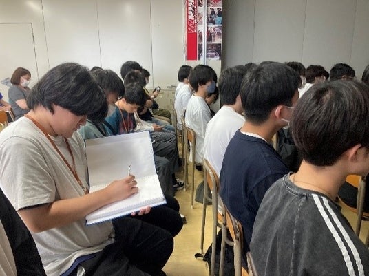 ゲーム業界の最前線で活躍されている玉置氏には、「新規企画の立て方やAIを活用したゲーム開発の最新トレンド」というテーマでご講演いただき、参加した高校生や専門学生は実際にAIを動かしながらのお話に、熱心にメモを取りながら聞き入っていました。