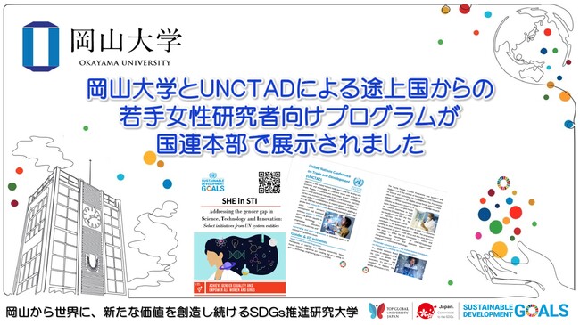 国立大学法人岡山大学(本部:岡山市北区、学長:那須保友)と国連貿易開発会議(UNCTAD)による「途上国からの若手女性研究者のための共同研究・研修コース(短期プログラム)」が、国連の『第8回持続可能な開発目標(SDGs)のための科学技術イノベーション(Science, Technology, and Innovation:STI)に関するマルチステークホルダーフォーラム(STIフォーラム)』で、STI分野におけるジェンダーギャップに関する世界的なイニシアチブ「“SHE in STI” – Addressing the gender gap in Science, Technology and Innovation: Select initiatives from UN system entities-」の代表的な事例のひとつとして国連より選ばれました。