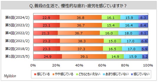マイボイスコム株式会社(東京都千代田区、代表取締役社長:高井和久)は、6回目となる『疲れ・疲労』に関するインターネット調査を2024年2月1日~5日に実施しました。